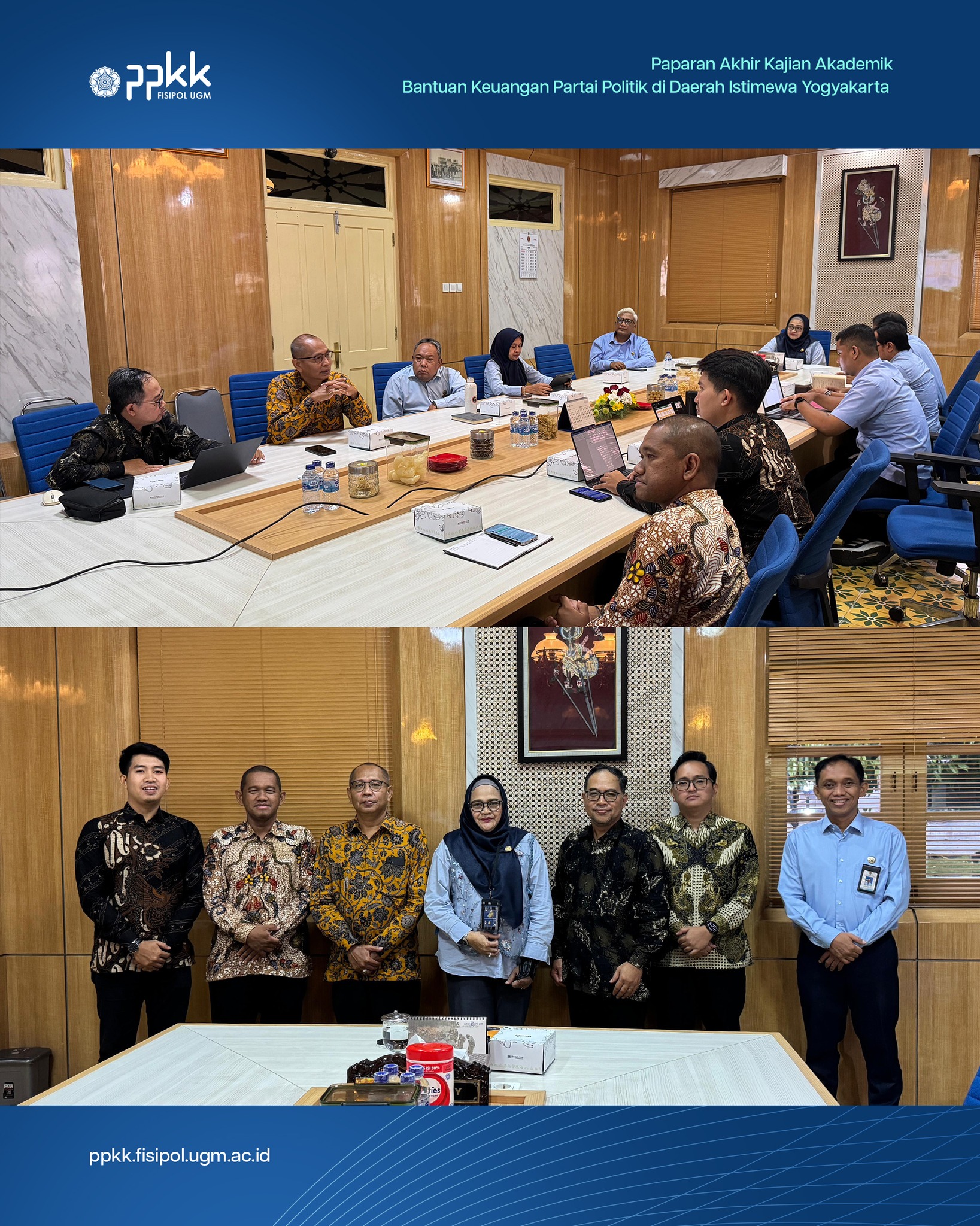PPKK Fisipol UGM melaksanakan kegiatan Pemaparan Akhir Kajian Akademik Bantuan Keuangan Partai Politik di Daerah Istimewa Yogyakarta pada hari Selasa, 10 Februari 2026. Kegiatan ini dihadiri langsung oleh Sekretaris Daerah DIY.